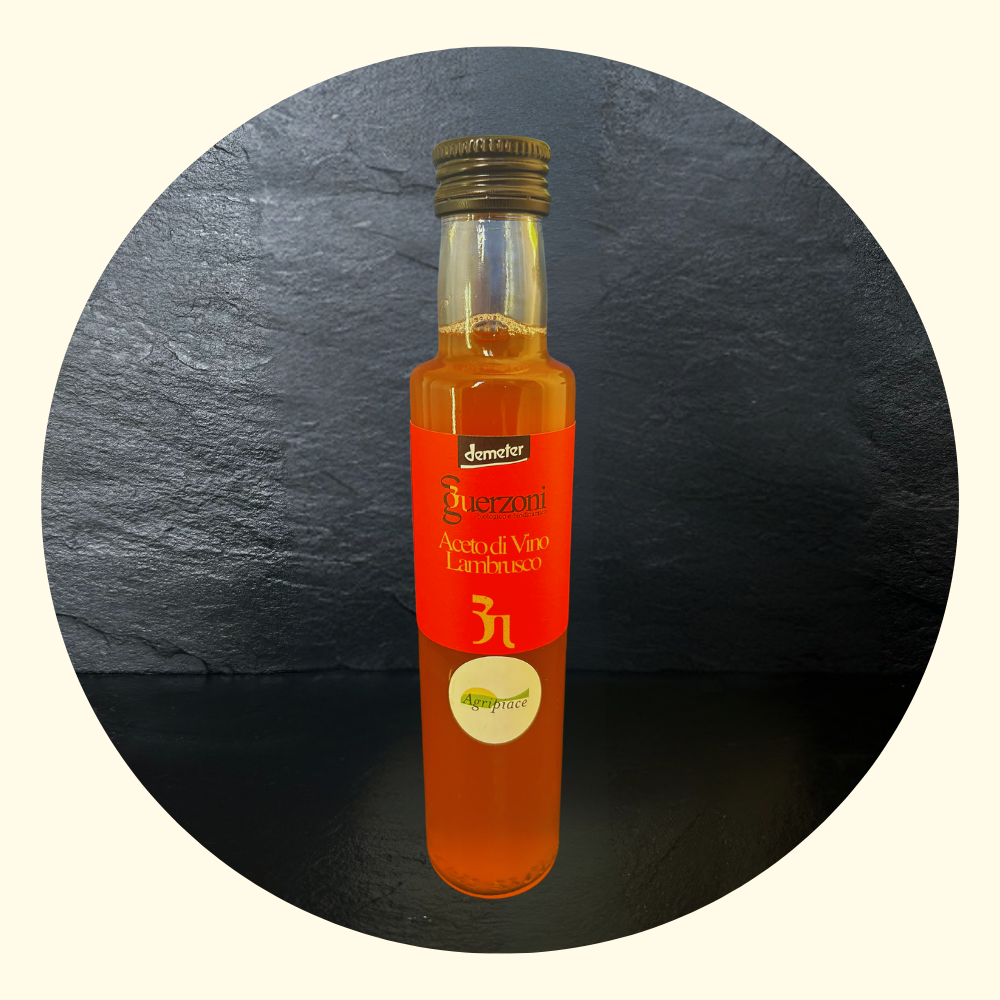 L’Aceto di Vino Lambrusco 6% – 250 ml è un condimento di alta qualità ottenuto dalla fermentazione naturale del vino Lambrusco. Caratterizzato da un colore rosso intenso e da un profumo vinoso e fruttato, offre un gusto equilibrato con una piacevole nota acidula (acidità 6%), ideale per esaltare ogni preparazione in cucina.