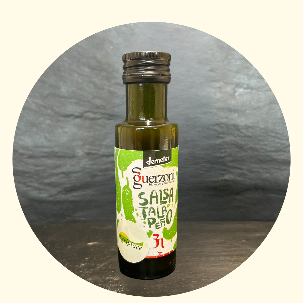 La Salsa Jalapeño Piccante Biologica Verde – 100 ml è un condimento fresco e vivace, realizzato con jalapeño verdi biologici selezionati. Dal colore verde brillante e dal profumo intenso, offre una piccantezza media/alta con note vegetali fresche e una leggera acidità che rende il sapore equilibrato e persistente.